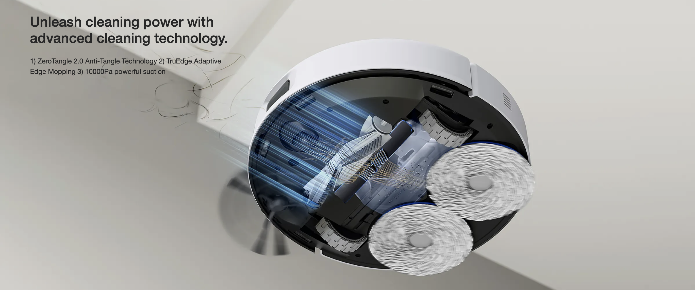 La ECOVACS Deebot N30 Pro Omni aspiradora Robot que aspira y mopea. Tiene una estación de carga con vaciado automático del polvo y que además lava y seca las mopas.Su potencia de succión es de 10.000 Pascales, tiene un rodillo anti enredos con tecnología ZeroTangle 2.0 que reduce en 99% los enredos de pelos en el rodillo, limpieza de mopa con agua caliente a 60 ℃. Su mopa adaptativa TruEdge le permite limpiar a ras de paredes y patas de muebles. Navegación laser LDS.