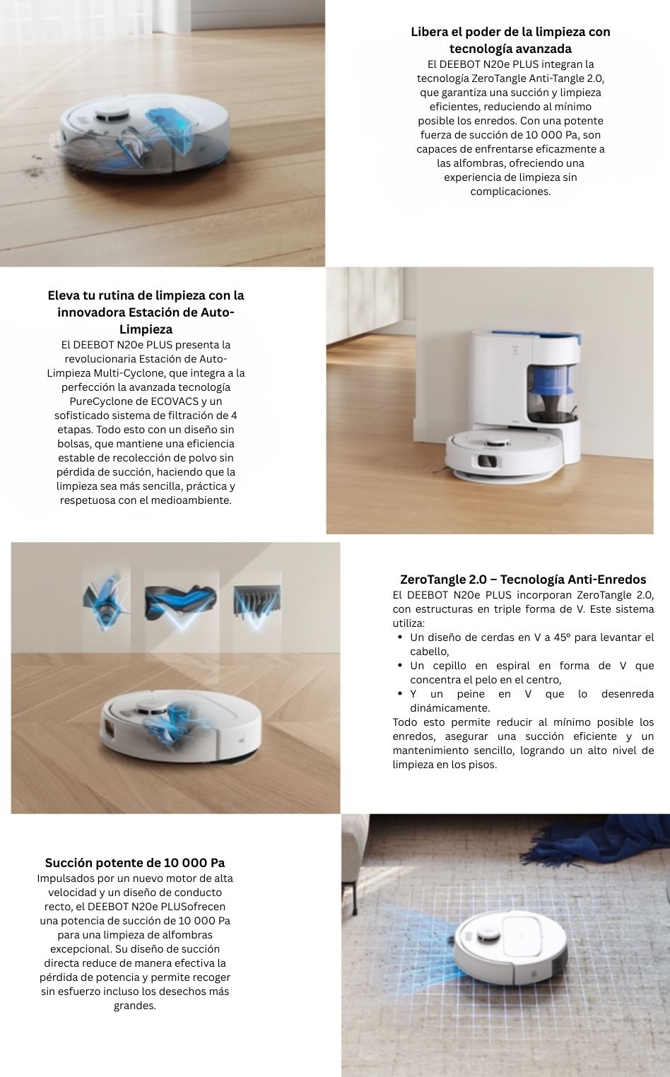 Robot Aspirador y trapeador, navegación laser LDS, potencia de succión de 10.000 Pascales, estación de vaciado automático sin bolsa PureCyclone, sistema anti-enredos de pelos, ideal para casas con pelos de mascotas ya que, al tener estanque de polvo ciclónico en vez bolsa, no hay que estar comprando bolsas de polvo cada vez que se llene de pelos, ¡Simplemente se vacía el estanque y listo!