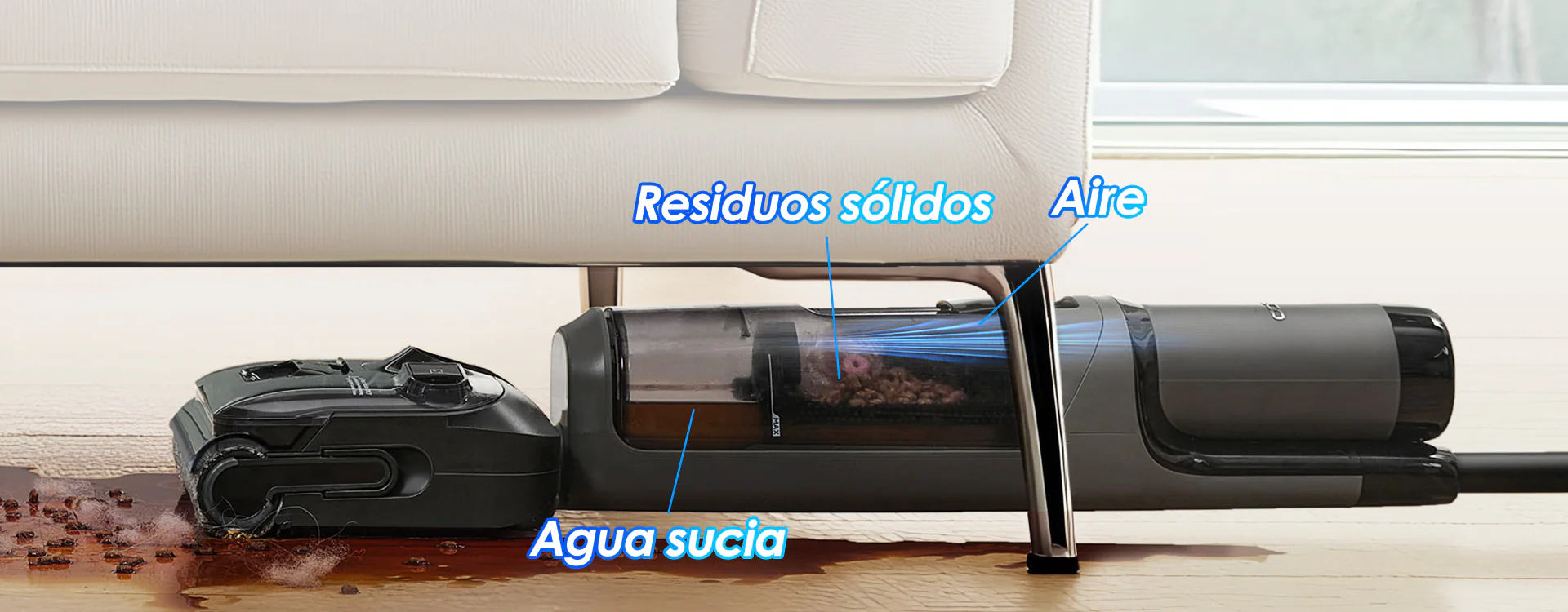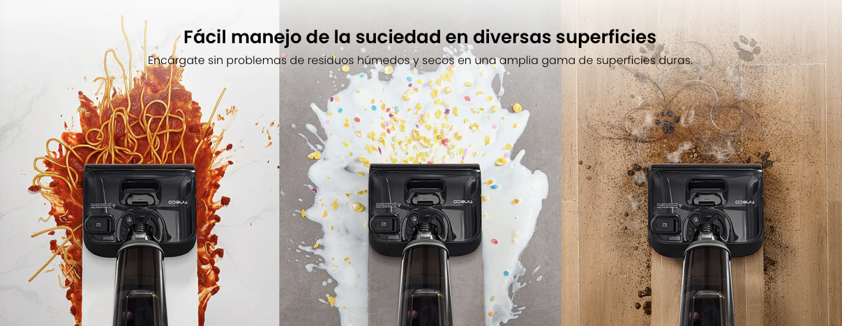 Levanta y remueve fácilmente la suciedad, los residuos y las hebras de cabello de tus pisos, mientras, simultáneamente, lava y aspira, manteniéndolos limpios y secos en todo momento, y dejando tu hogar fresco e impecable.